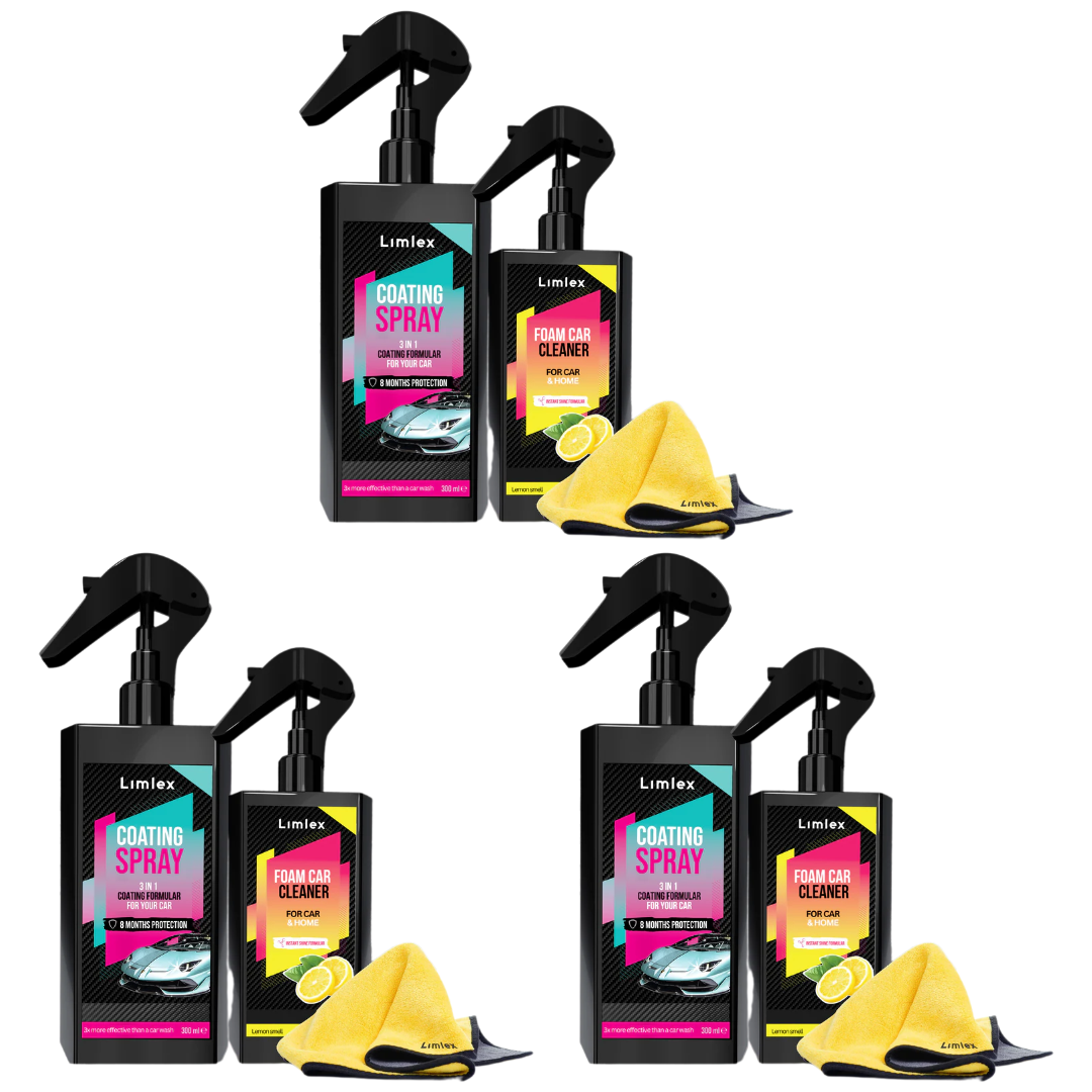 Stop wasting hours on car washes and expensive detailing. The Limlex® Platinum Car Care Set uses German-engineered HydroShield-X™ nano-ceramic technology to give your car a showroom shine and long-lasting protection — all with just one spray.